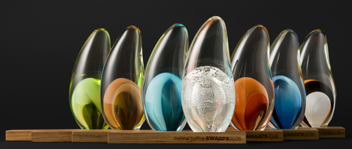 The winner will receive a bespoke, hand-blown glass award mounted on an Australian native timber base, in recognition of their work, and a $5,000 grant from Animals Australia to fund further similar advocacy.